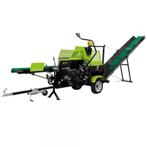 Cepilnik lesa ZIPPER ZI-SPA380 ima hidravlično gnan transporter za hlode, žago, ročno nastavljiv križ za cepljenje, sila cepljenja 20 t in vrtljiv transportni trak za obdelane hlode. Preprost, učinkovit in zmogljiv.