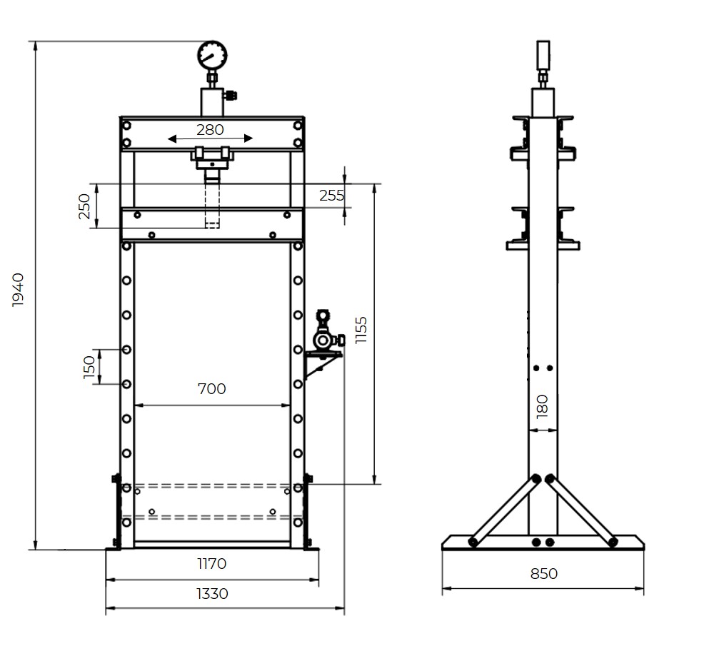 - ročno krmiljenje tlaka preko hidravlične ročne črpalke ali pnevmatskega tlaka