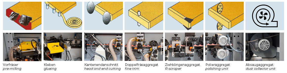 • tlačni valji zagotavljajo popolno povezavo med laminatom in obdelovancem