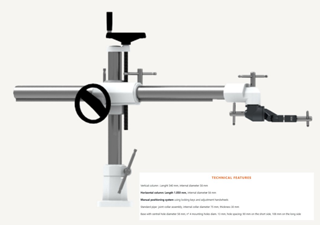 - Vodoravni steber: dolžina 1,050 mm, notranji premer r 58 mm