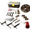 vključeno v dobavo: 3-čeljustna vpenjalna glava Ø160 mm, prednja plošča, ščitnik vpenjalne glave, stojalo stroja, ščitnik za brizg, stabilen počitek, sledite mirovanju, pladenj za sekance, 4-stransko orodje, menjalnik, 2x mrtva središča MT3, navojni navoj, ključno orodje, reduktor MT5 / MT3, svetilka