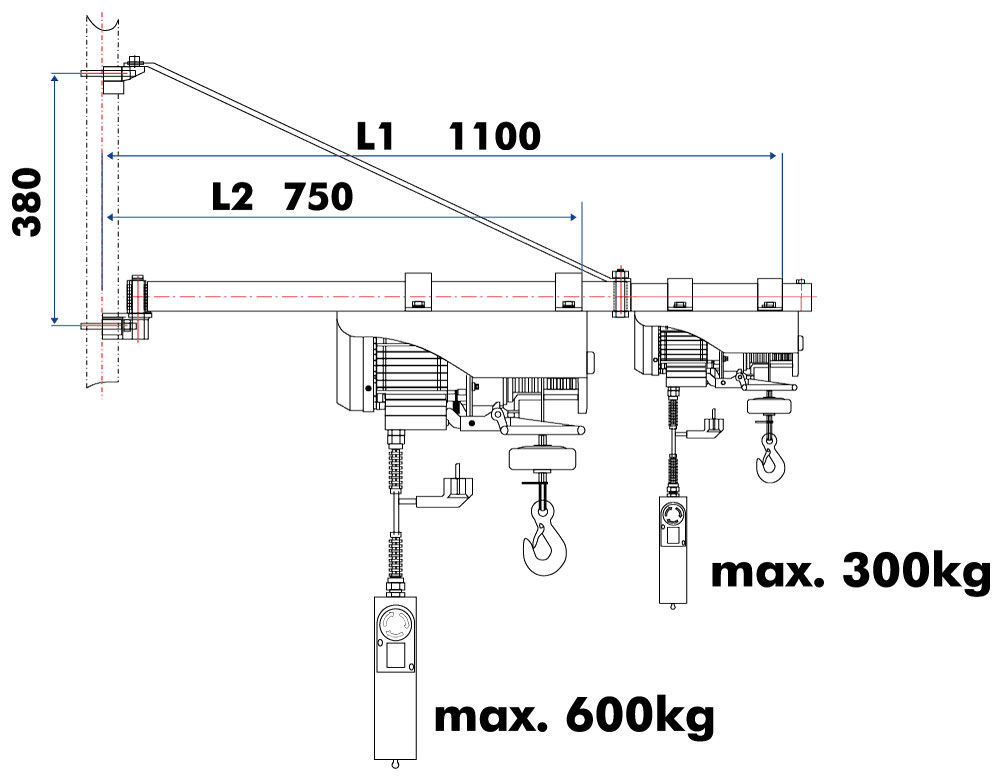 - SA3001100: polmer 750/1100 mm, maks. 600/300 kg